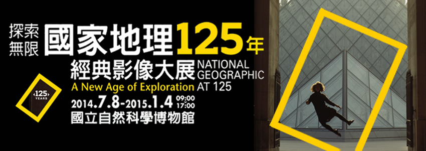 「探索無限-國家地理125年經典影像大展」自2014年7月8日起在台中國立自然科學博物館展出。該展回顧《國家地理》雜誌自1888年創刊之經典攝影作品,展現《國家地理》125年持續不斷的「探索」精神。展覽收錄的攝影作品樣樣經典,包含1984年阿富汗的綠眼少女、1991年探勘鐵達尼號海底照等世界知名之作,帶領您一同探索世界地理之最!此外,國家地理更首度在台策劃「台灣記憶」專區,提供1920年代至近代的珍藏台灣影像,讓您回味歷史,更加體會國家地理客觀、全面且深入的報導風格。